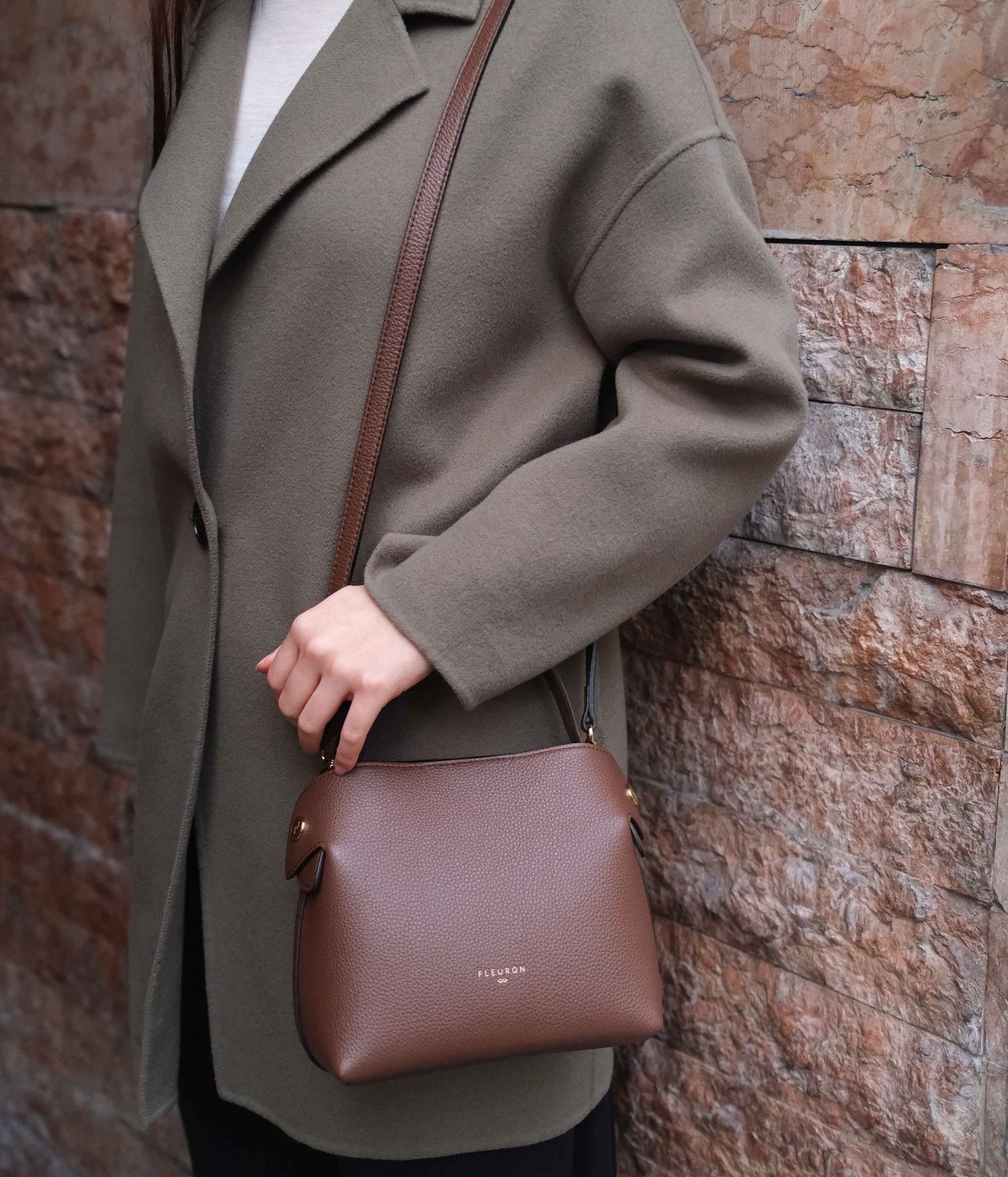 The Mini Swann in Tiramisu Grained Calfskin brings a warm, deep touch to any outfit. Its rich brown tone pairs effortlessly with neutral shades like ivory, beige, or light grey, and creates an elegant contrast with deeper hues such as camel, forest green, or midnight blue.