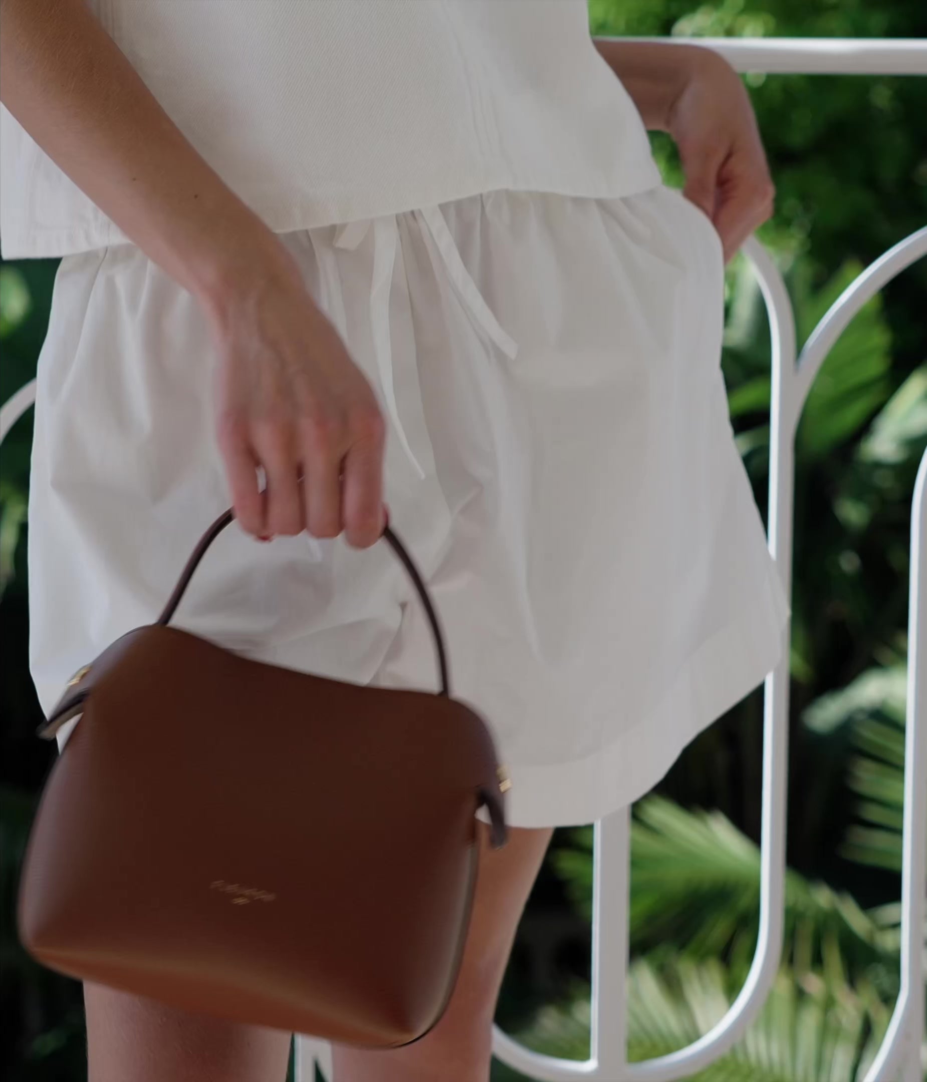 The Mini Swann bag in Brown, crafted from grained calf leather, is a timeless piece that adds a natural, sophisticated touch to your wardrobe. This warm, earthy shade pairs effortlessly with a variety of styles, bringing subtle character to any outfit.