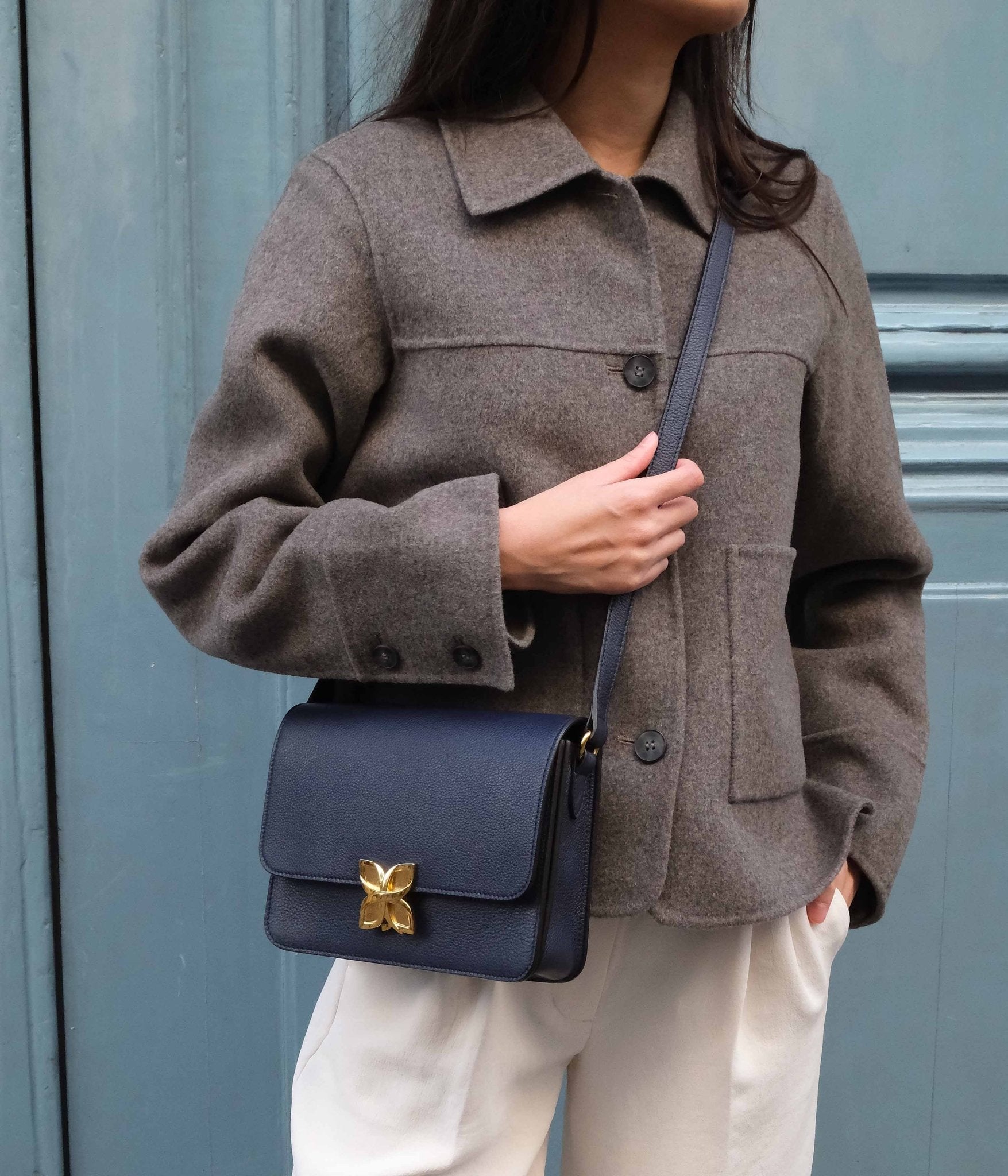 Step into understated elegance with our Hortensia bag in timeless Navy Blue grained calf leather. Carefully handcrafted in our Italian workshop, this design strikes the perfect balance between refined simplicity and modern allure.