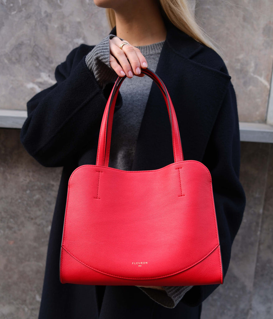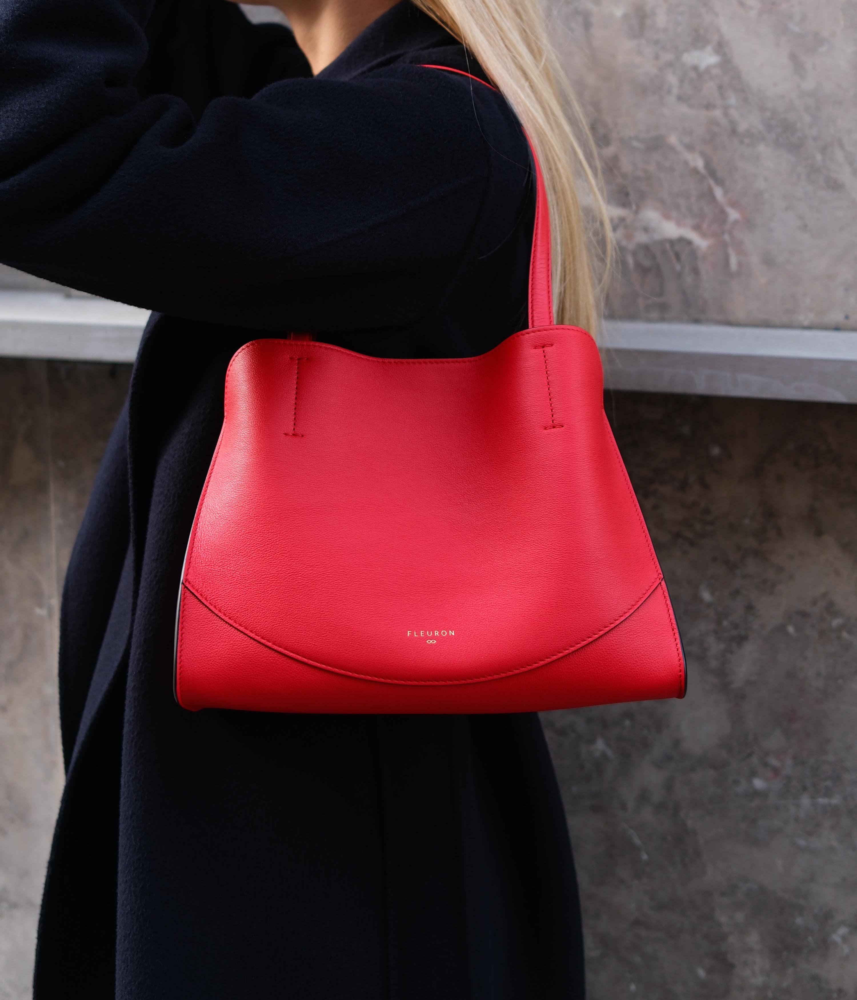 Its Goji Berry shade, vibrant yet refined, pairs beautifully with neutral tones like beige, grey, or sand, as well as deeper hues such as navy or chocolate for an elegant and confident contrast.