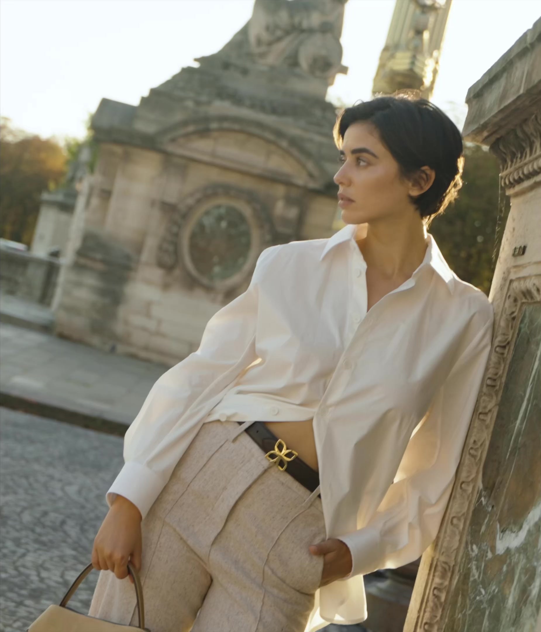 The Medium Swann in Calf Suede Biscuit, designed in Paris and handcrafted in Italy, delights with its softness and natural brightness. Its light, warm Biscuit shade pairs effortlessly with neutral tones like ivory or sand, as well as deeper hues such as navy or chocolate for an elegant contrast.