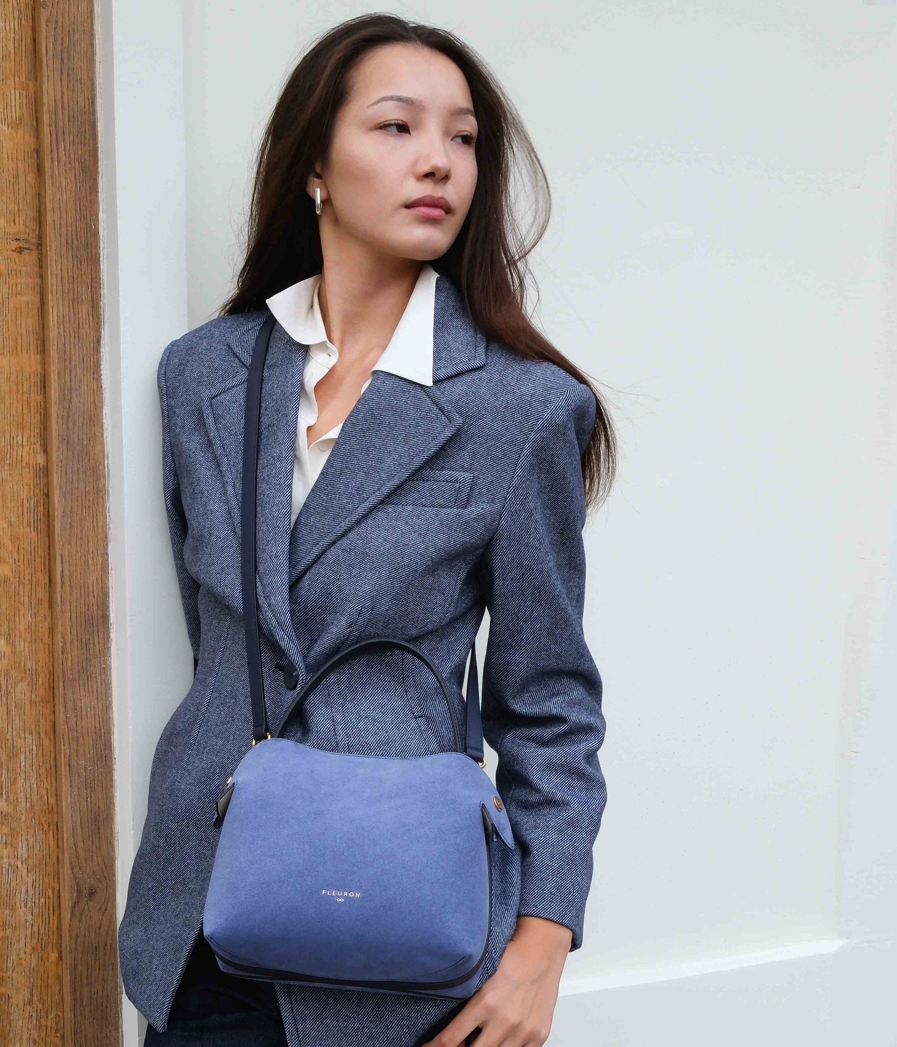 The Medium Swann in Calf Suede Jeans, designed in Paris and handcrafted in Italy, combines modernity with a relaxed spirit. Its deep, versatile Jeans shade pairs beautifully with light tones such as ecru, beige, or grey, while also working with stronger colors like black, camel, or burgundy for a bold and confident style.