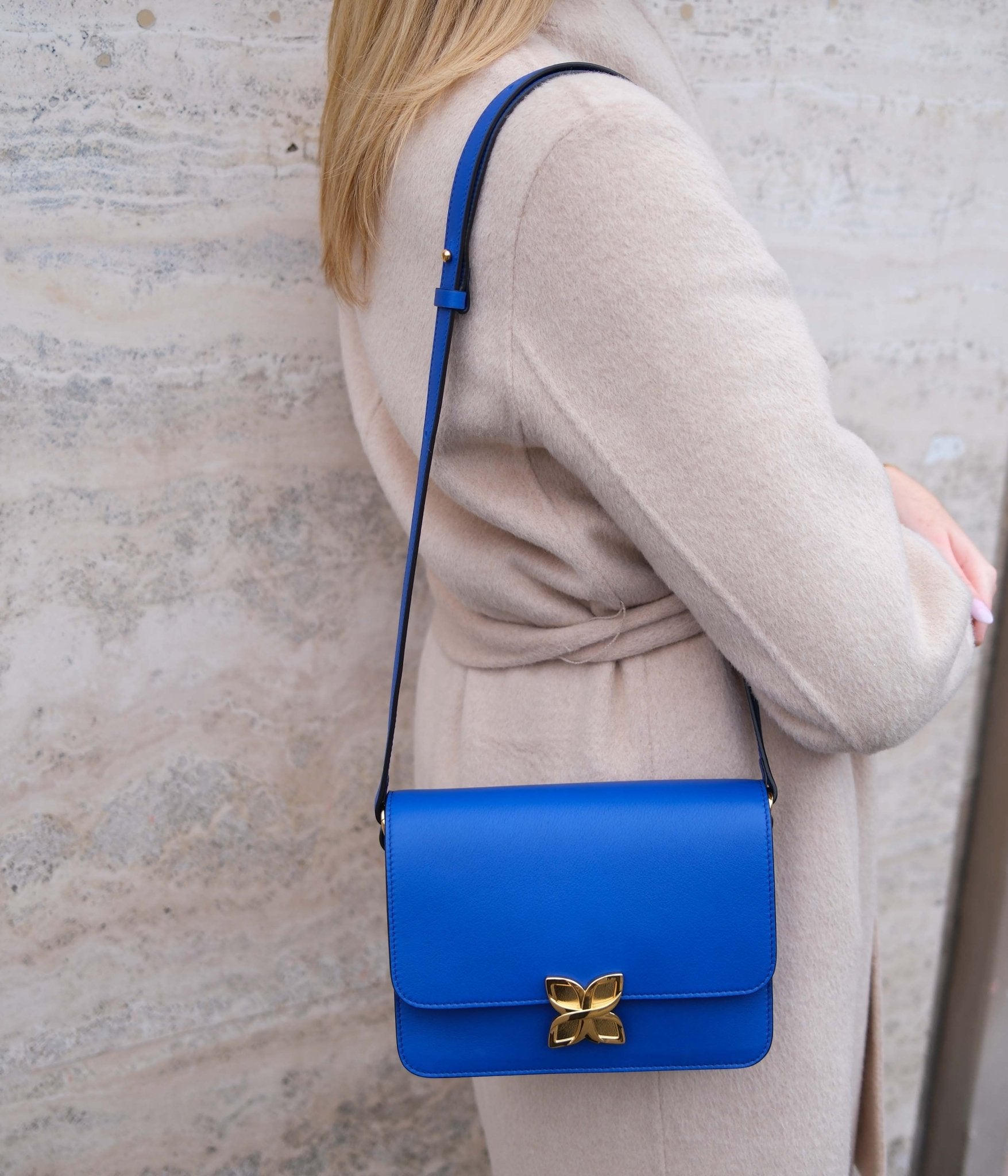 Discover the understated power of the Hortensia bag by Fleuron, crafted from smooth calf leather in a vibrant Bleu Roi shade. Carefully made in our Italian workshops, this piece embodies bold sophistication and timeless elegance.