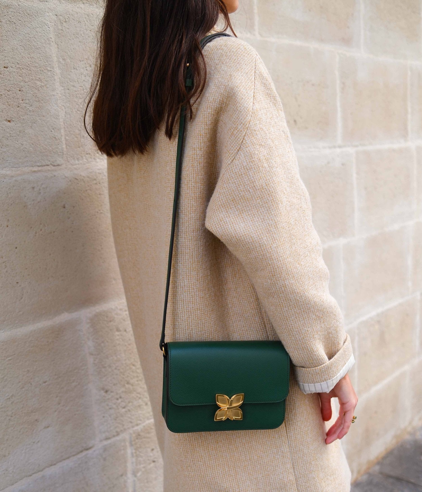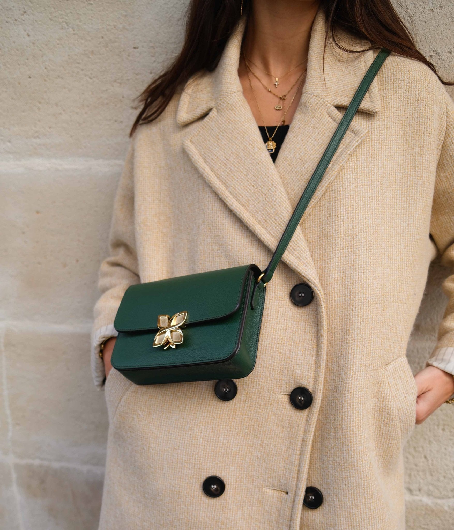 Let yourself be charmed by the elegant depth of the Mini Hortensia in Vert Sapin, crafted from fine-grained calf leather that blends intensity with refinement. Carefully handmade in our Italian ateliers, this accessory reflects the richness of exceptional craftsmanship and the elegance of a timeless design.
